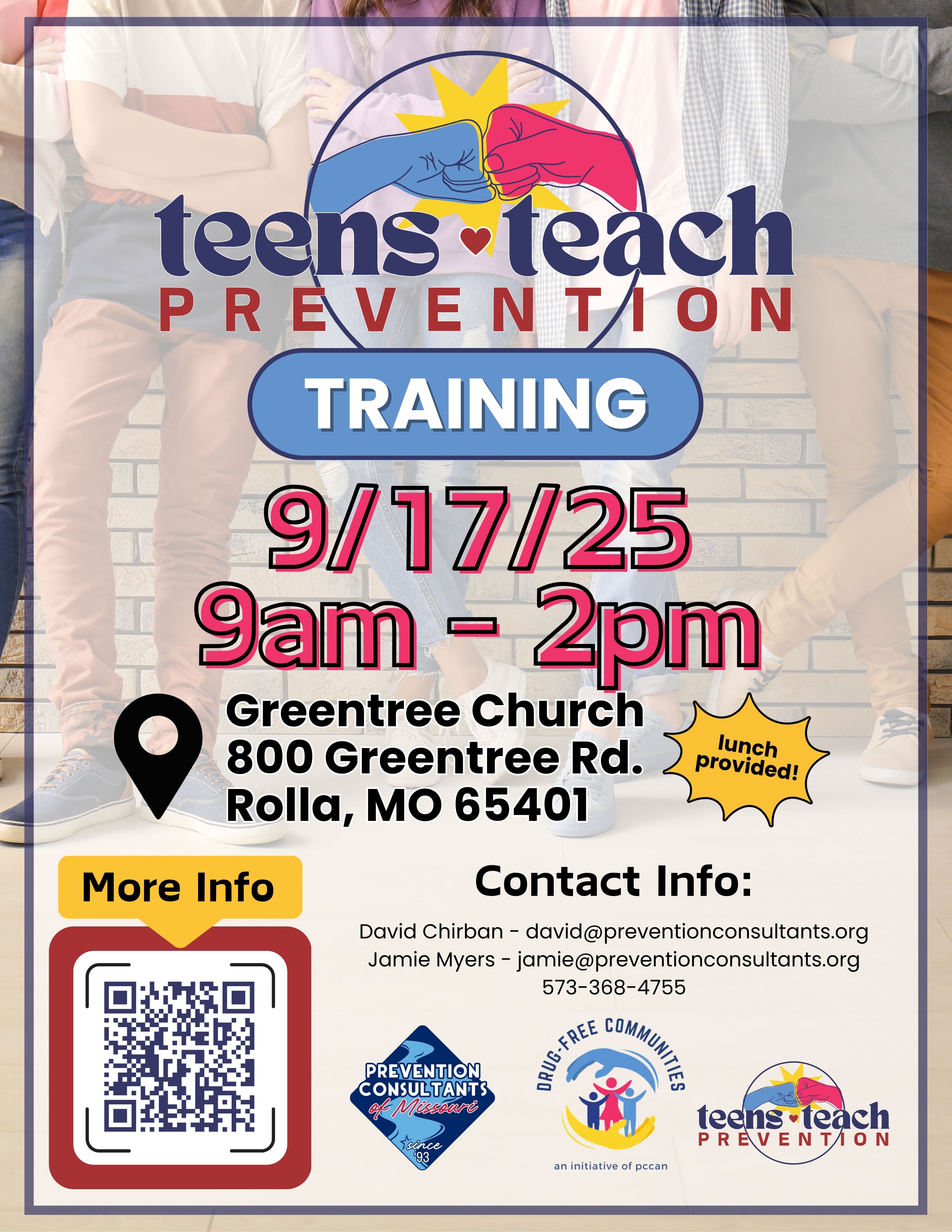 Teens teach is a collaboration project through Prevention Consultants of Missouri (PCM), Drug Free Communities (DFC) and area school districts. They provide training, presentations, scripts, and outlines for high school students to teach substance use prevention to their peers, grades 6th-8th. Lessons include Vaping/THC +Wellness and Alcohol + Wellness.