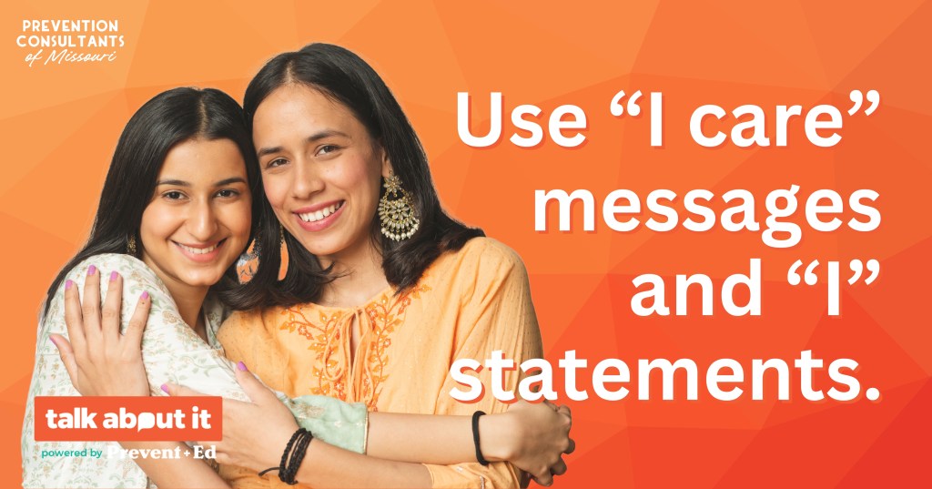 Post Copy – All Platforms: Using “I care” messages and clear “I” statements helps strengthen trust and reduces the chances of underage drinking. These messages help teens feel understood — not judged — and make them more likely to talk openly, ask questions, and turn to you when facing pressure. Supportive communication helps protect their developing brain and empowers better decisions.